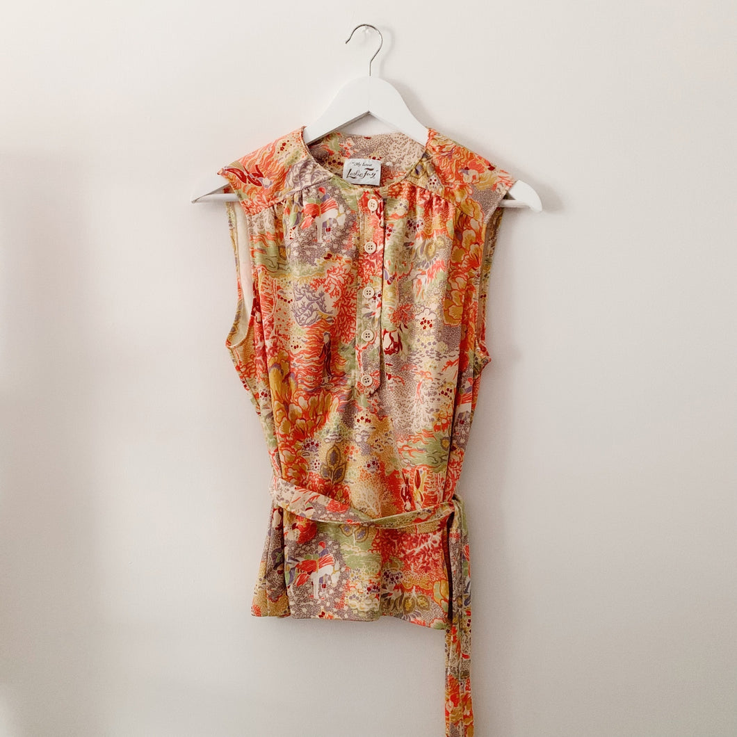 70s Vintage Leslie Fay Floral Print Blouse - S/M